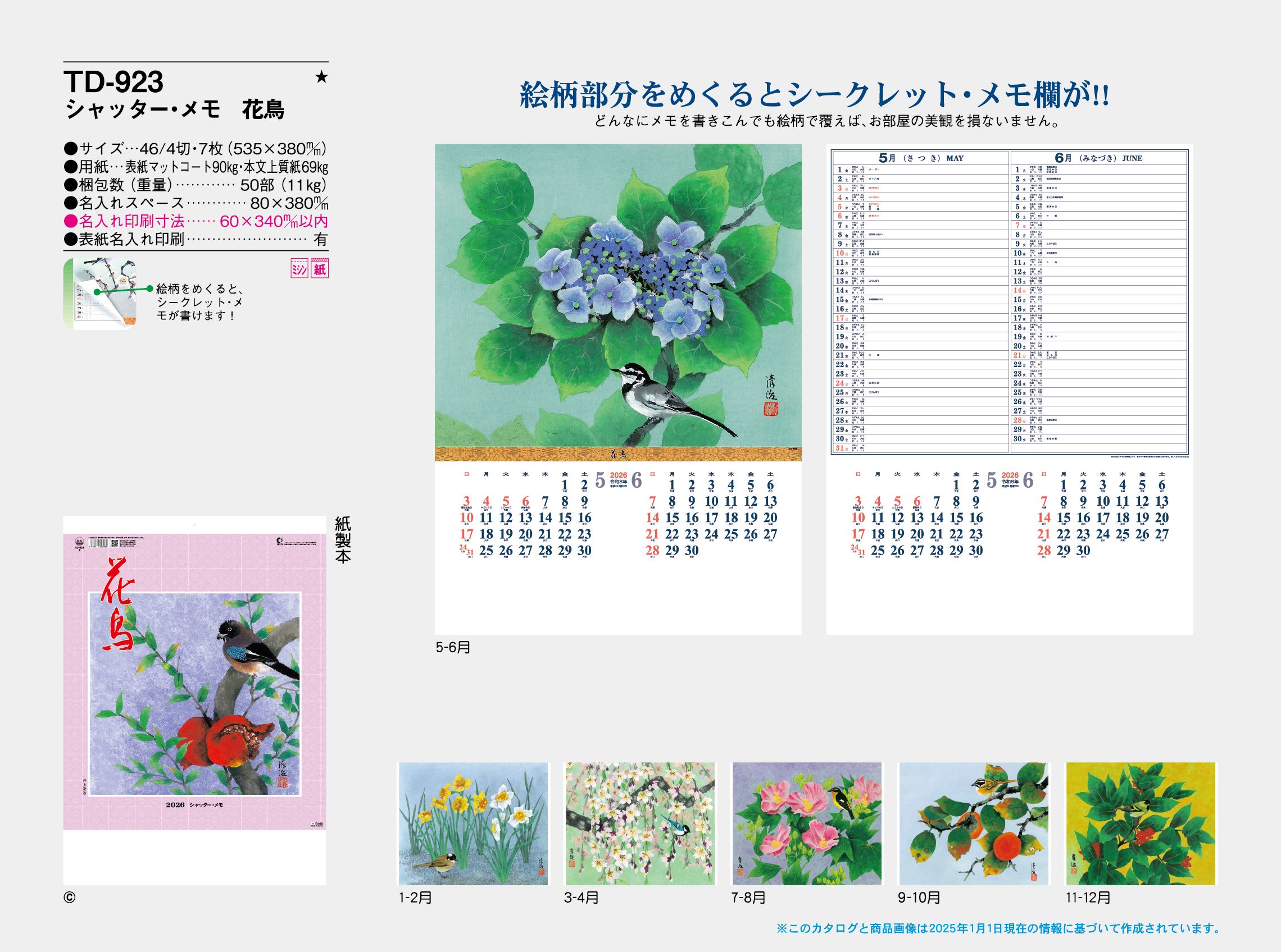 TD-923 , 46/4-7H , シャッター・メモ花鳥 名入れカレンダー class=