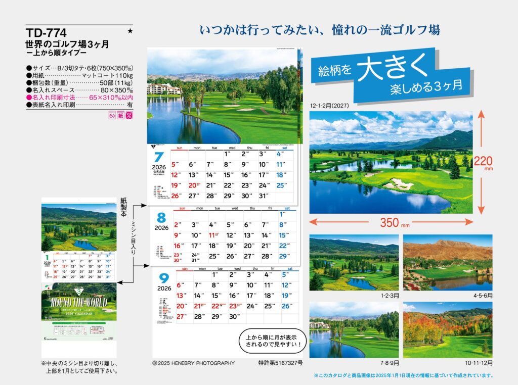 商品詳細 品番 : TD-774 B/3-タテ6H 世界のゴルフ場3ヶ月-上から順タイプ- : 2026年版 < プレゼントにも最適!激安名入れカレンダー!。 TD774 ◆現在メーカー【在庫豊富】 ●キャンペーン割 […]