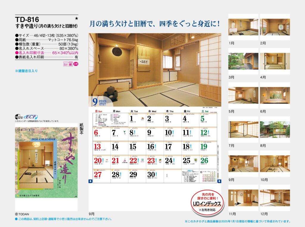 商品詳細 品番 : TD-816 46/4-13H すきや造り(月の満ち欠けと旧暦付) : 2026年版 < 時間は限られている。カレンダーがその価値を示す。格安カレンダーを扱っています。 TD816 ◆現在メーカー […]