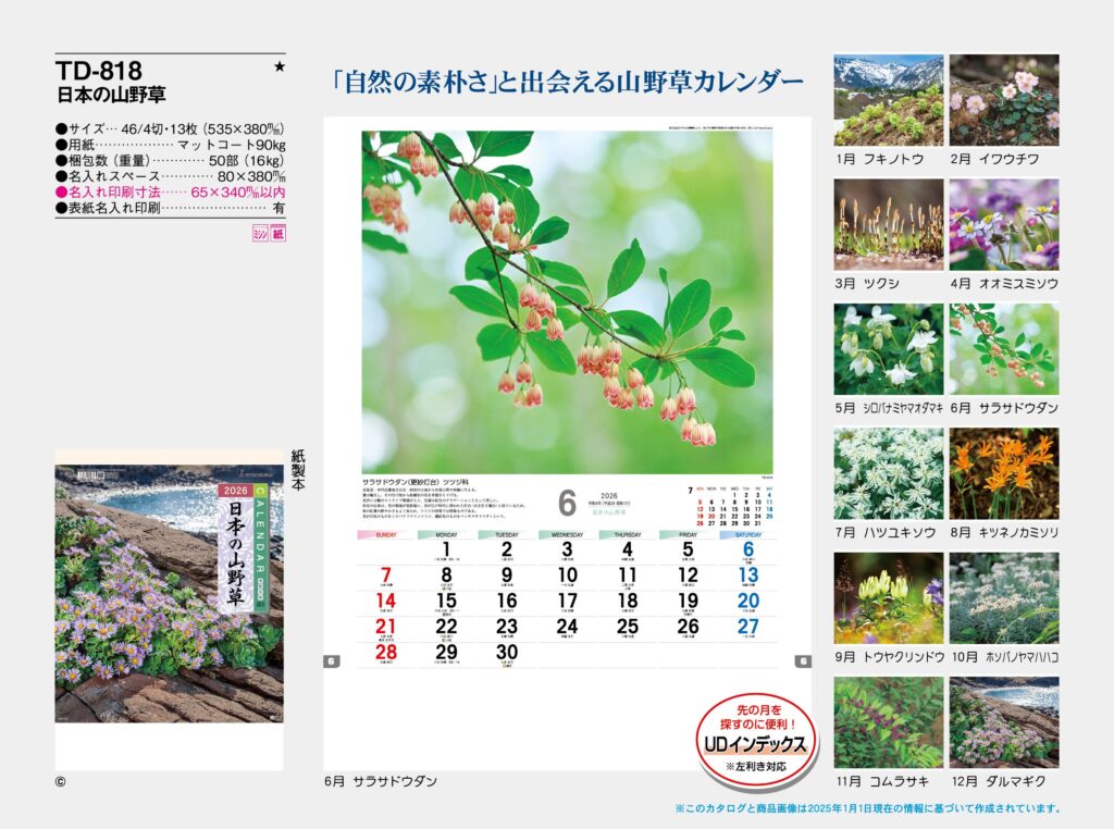 品番 : TD-818 46/4-13H 日本の山野草 : 2026年版