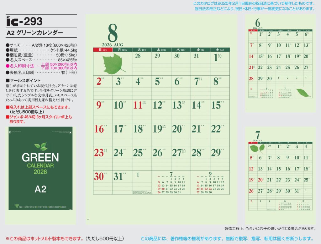 商品詳細 品番 : IC-305 46/3×6 3ヶ月グリーンカレンダー : 2026年版 < いやしが求められている現代社会。グリーンはいやしを代表する色です。 IC305 ◆現在メーカー【在庫豊富】 ●キャンペー […]