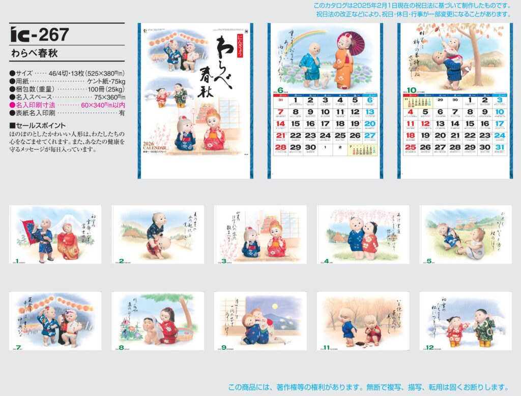 商品詳細 品番 : IC-267 46/4×13 わらべ春秋 : 2026年版 < 名入れカレンダーのキャッチフレーズ:日々を彩る小さな予定。 IC267 ◆現在メーカー【在庫豊富】 ●キャンペーン割引価格中の8月3 […]