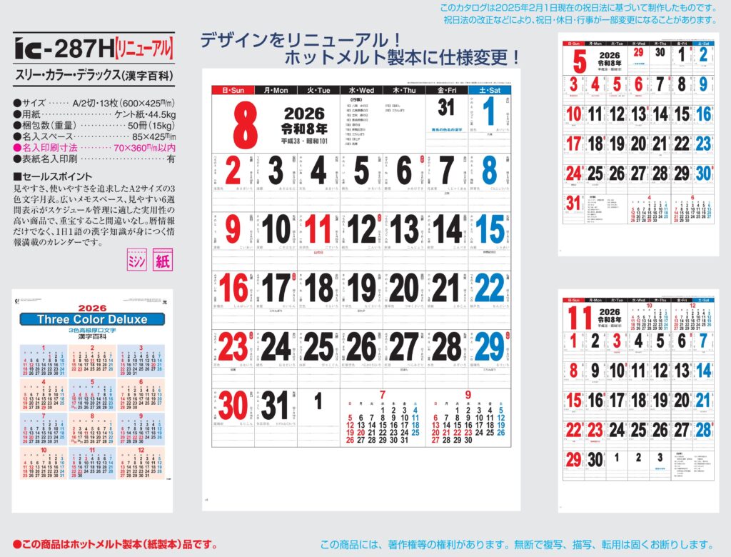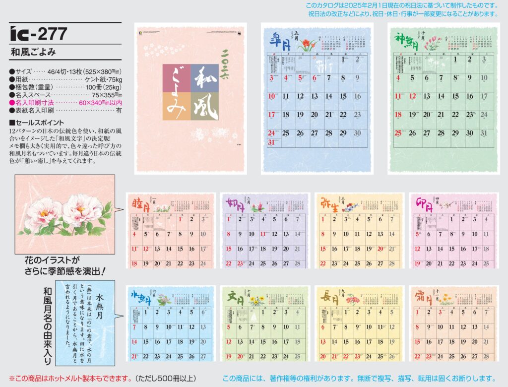 商品詳細 品番 : IC-277 46/4×13 和風ごよみ : 2026年版 < レギュラーサイズ一般的なサイズの名入れカレンダーです。 IC277 ◆現在メーカー【在庫豊富】 ●キャンペーン割引価格中の8月31日 […]