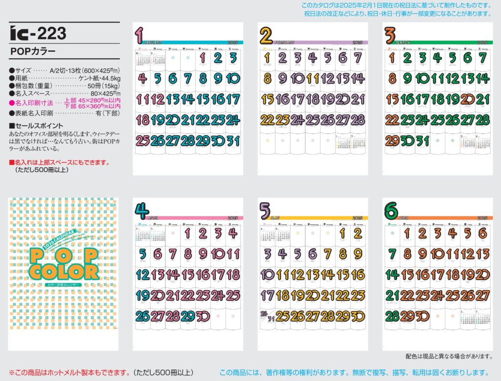 商品詳細 品番 : IC-223 A/2×13 POPカラー文字 : 2026年版 < 数字の見やすい少し大判のA2サイズです IC223 ◆現在メーカー【在庫豊富】 ●キャンペーン割引価格中の8月31日までにご注文 […]