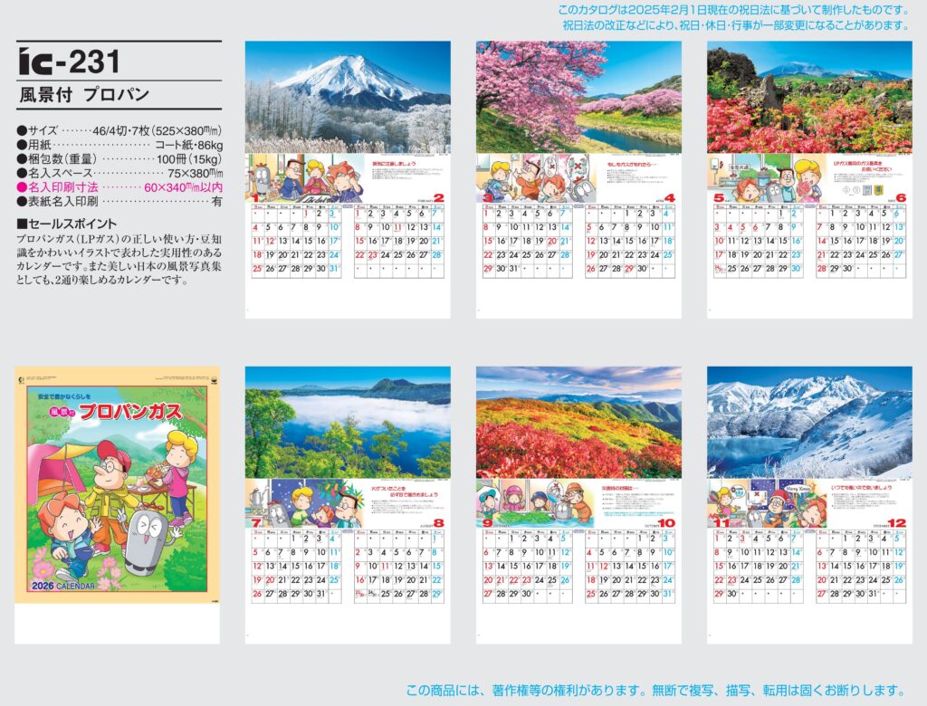 商品詳細 品番 : IC-217 46/4×7 日本の風景 : 2026年版 < ★人気のカレンダー ◆現在メーカー【在庫豊富】 ●キャンペーン割引価格中の8月31日までにご注文をお願いします。 20~29冊×単価640 […]