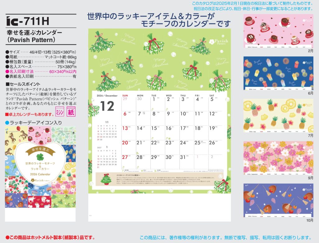 商品詳細 品番 : IC-711 46/4×13 幸せを運ぶカレンダー : 2026年版 < 幸せを運ぶカレンダー(PavishPattern)IC-711 幸せを運ぶカレンダー(PavishPattern) IC7 […]