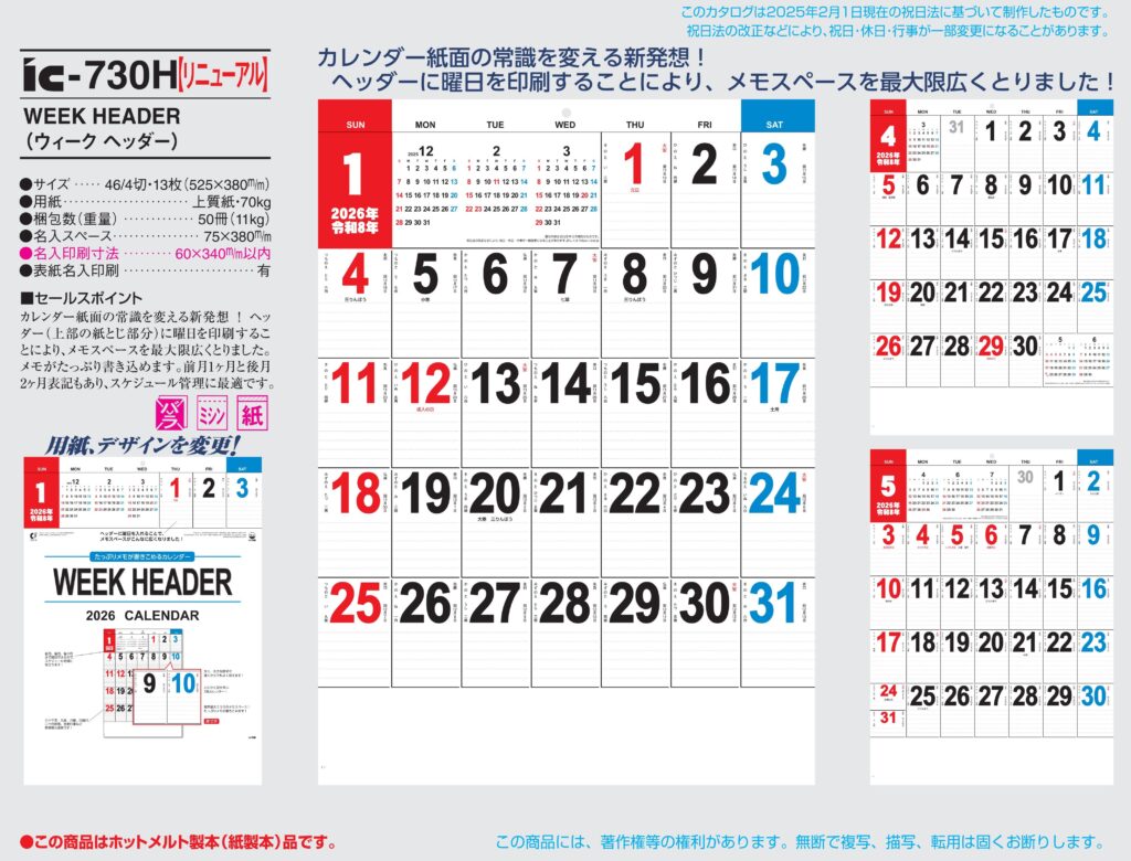 商品詳細 品番 : IC-730 46/4×13 WEEK HEADER(ウィークヘッダー) : 2026年版 < WEEKHEADER(ウィークヘッダー)IC-730 WEEKHEADER(ウィークヘッダー) IC […]