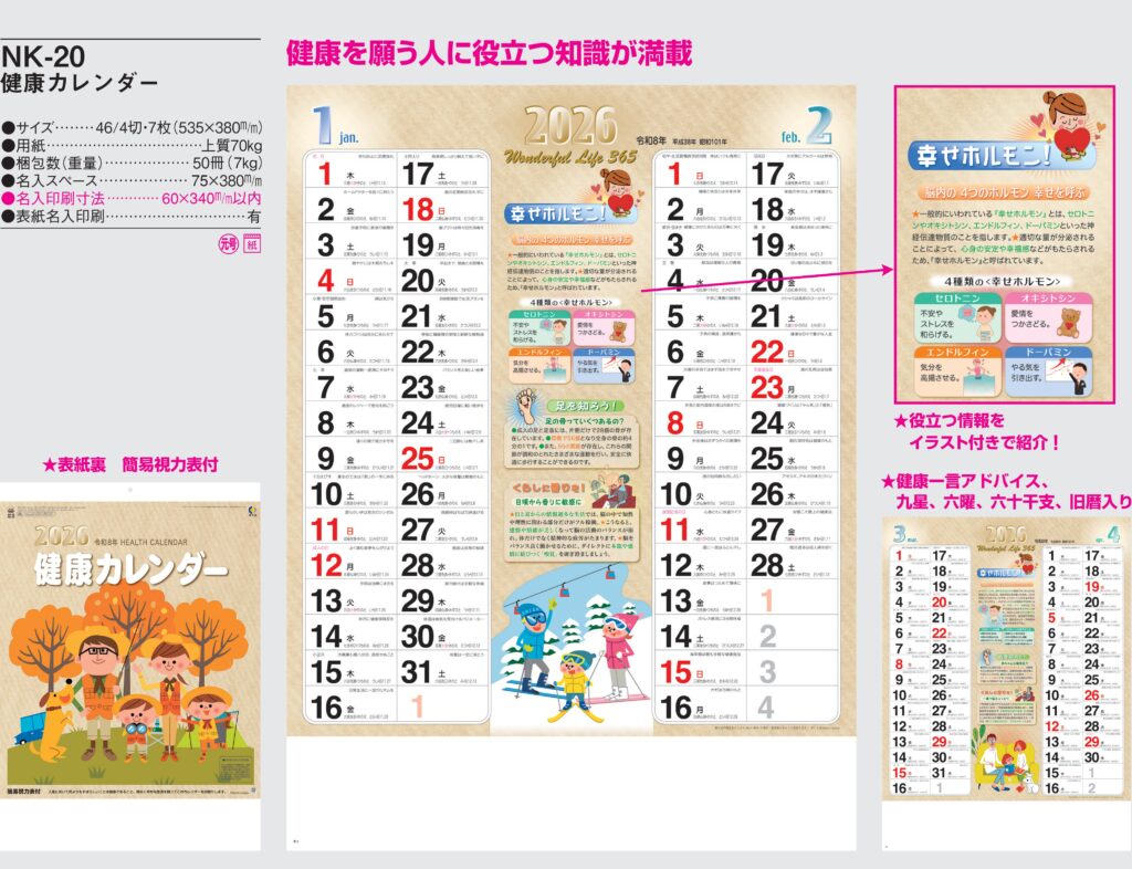 品番 : NK-020 B4-7 健康カレンダー : 2026年版