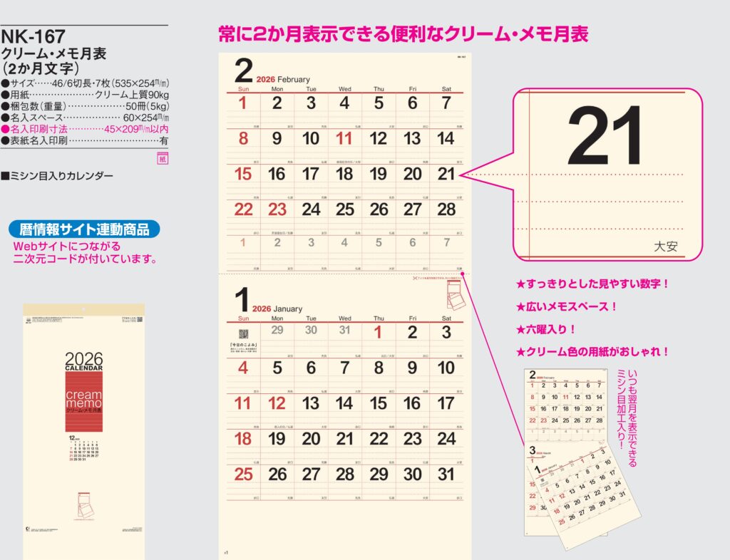 商品詳細 品番 : NK-167 B6長-7 クリーム・メモ月表(2か月文字) : 2026年版 < コンパクトサイズの忘れない、カレンダー。 NK167 ◆現在メーカー【在庫豊富】 ●キャンペーン割引価格中の8月3 […]