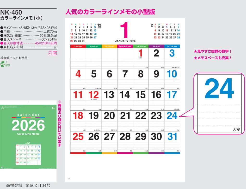 商品詳細 品番 : NK-450 B8-13 カラーラインメモ(小) : 2026年版 < お買い得な小さなサイズカレンダー、大きな使い勝手。 NK450 ◆現在メーカー【在庫豊富】 ●キャンペーン割引価格中の8月3 […]