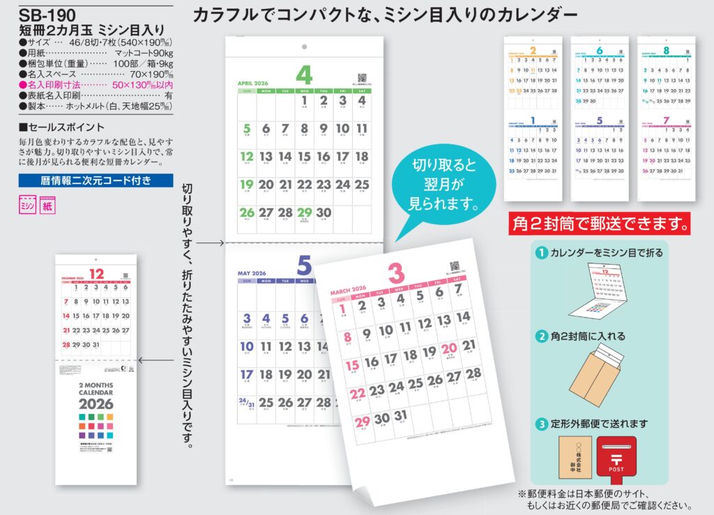 商品詳細 品番 : SB-190 46/8切/7 短冊2カ月玉 ミシン目入り : 2026年版 < 小さなスペースに大きな予定を記す名入れカレンダー。 SB190 ◆現在メーカー【在庫豊富】 ●キャンペーン割引価格中 […]