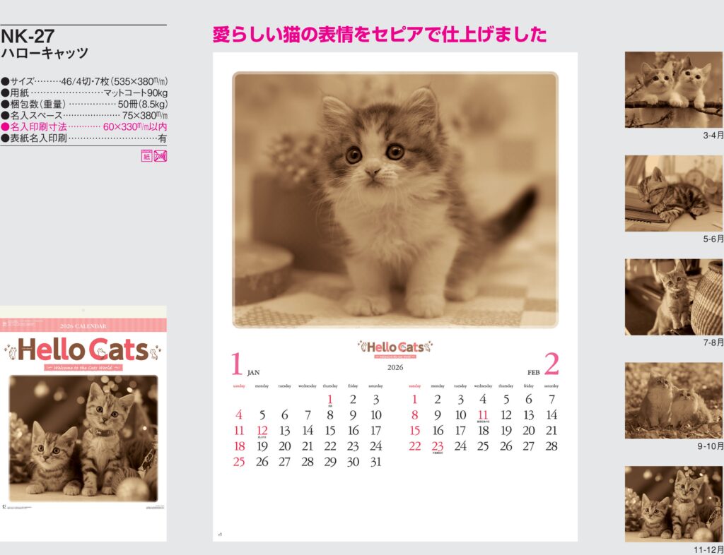 商品詳細 品番 : NK-027 B4-7 ハロ-キャッツ : 2026年版 < 愛らしい猫の表情をセピアで仕上げました NK027 ◆現在メーカー【在庫豊富】 ●キャンペーン割引価格中の8月31日までにご注文をお願 […]