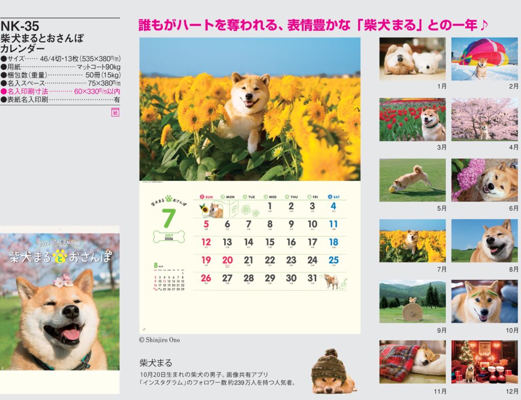 商品詳細 品番 : NK-035 B4-13 柴犬まるとおさんぽカレンダー : 2026年版 < 誰もがハートを奪われる、表情豊かな柴犬「まる」との一年♪ NK035 ◆現在メーカー【在庫豊富】 ●キャンペーン割引価 […]