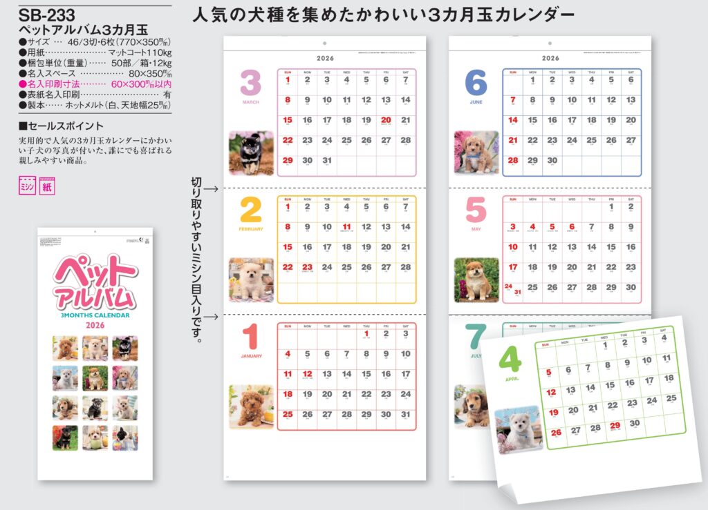 商品詳細 品番 : SB-233 46/3切/6 ペットアルバム3カ月玉 : 2026年版 < 人気の犬種を集めたかわいい3カ月玉カレンダー SB233 ◆現在メーカー【在庫豊富】 ●キャンペーン割引価格中の8月31 […]