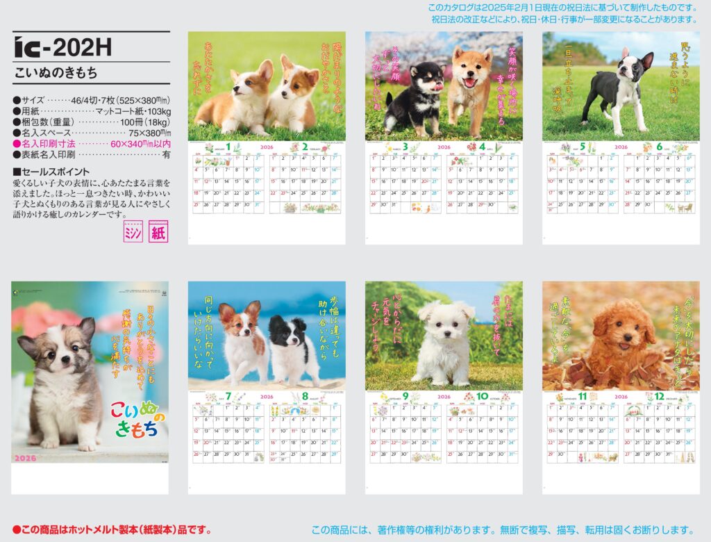 商品詳細 品番 : IC-202 46/4×7 こいぬのきもち : 2026年版 < ★おすすめカレンダー ◆現在メーカー【在庫豊富】 ●キャンペーン割引価格中の8月31日までにご注文をお願いします。 20~29冊×単価 […]
