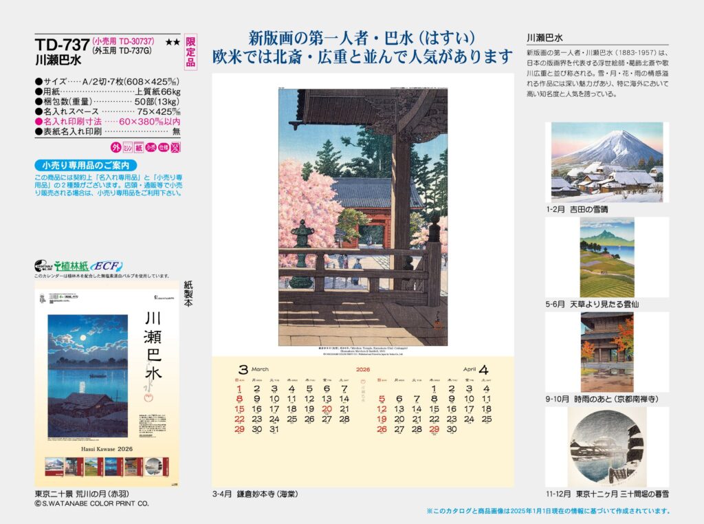 商品詳細 品番 : TD-737 A/2-7H 川瀬巴水 : 2026年版 < ★おすすめカレンダー ◆現在メーカー【在庫豊富】 ●キャンペーン割引価格中の8月31日までにご注文をお願いします。 20~29冊×単価930 […]