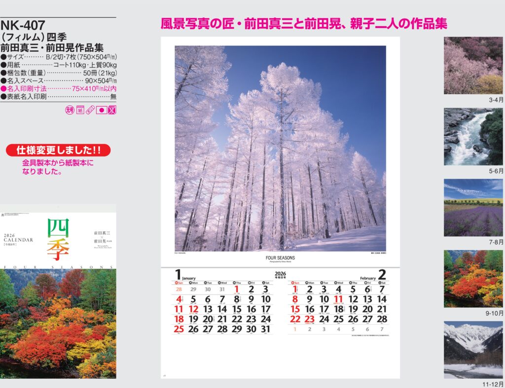 商品詳細 品番 : NK-415 フィルム-7 カラーズ : 2026年版 < 豪華なフィルムカレンダー NK415 ◆現在メーカー【在庫豊富】 ●キャンペーン割引価格中の8月31日までにご注文をお願いします。 20~2 […]