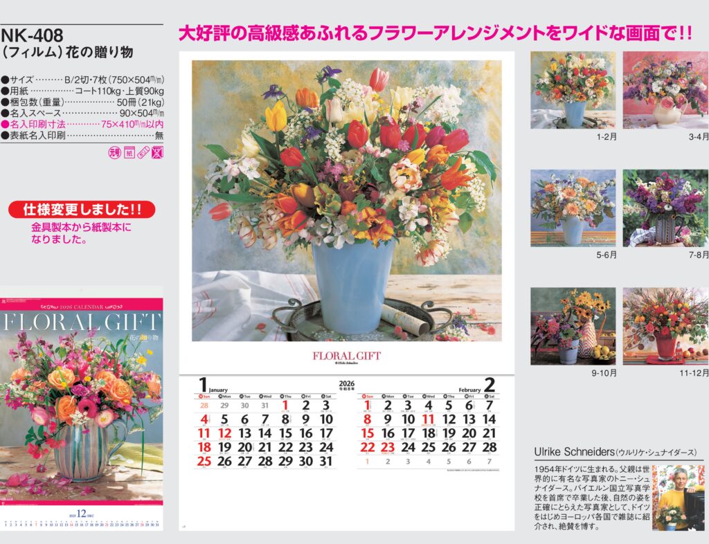 商品詳細 品番 : NK-408 フィルム-7 花の贈り物 : 2026年版 < ★おすすめカレンダー ◆現在メーカー【在庫豊富】 ●キャンペーン割引価格中の8月31日までにご注文をお願いします。 20~29冊×単価13 […]