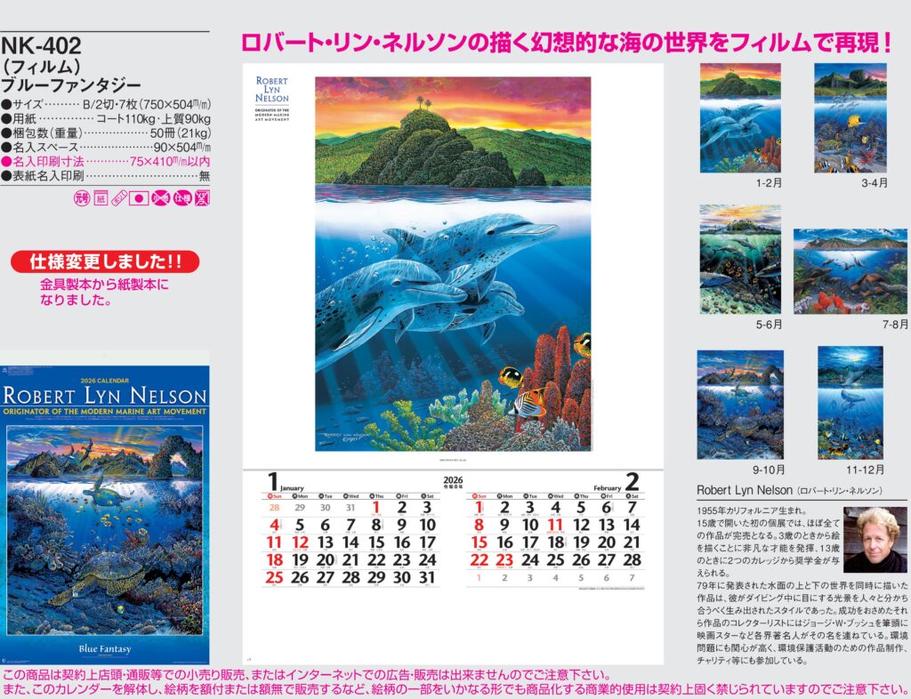 商品詳細 品番 : NK-042 B4-7 ブル-ファンタジ- : 2026年版 < マリンアートの先駆者、ロバート・L・ネルソンの幻想的な海の世界を海の生命の輝きを鮮やかな色彩で表現するロバート・リン・ネルソン。見 […]