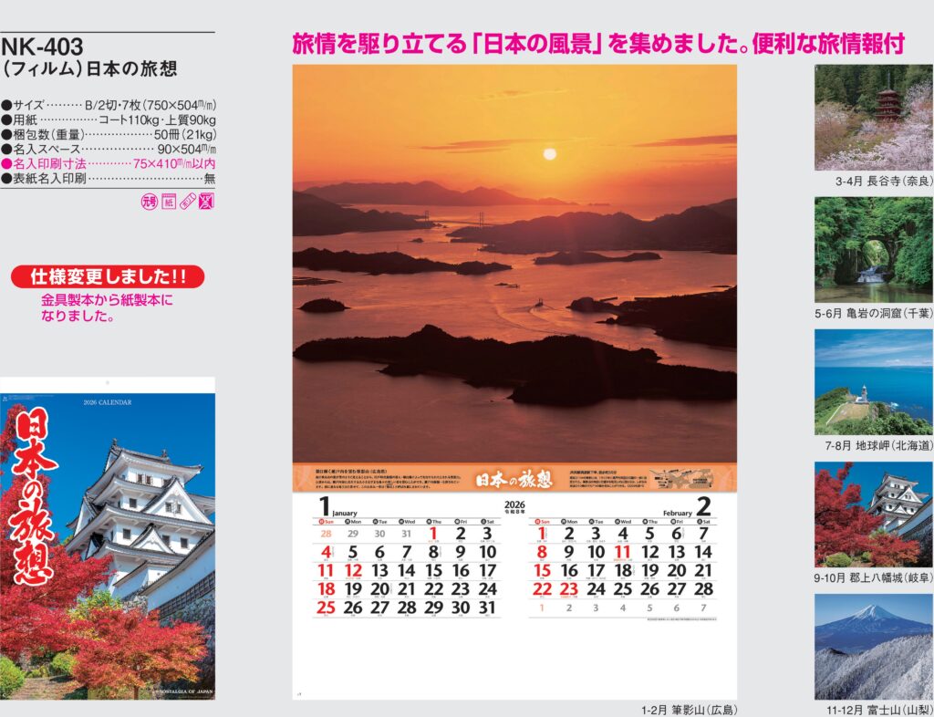 商品詳細 品番 : NK-403 フィルム-7 日本の旅想 : 2026年版 < 豪華なフィルムカレンダー NK403 ◆現在メーカー【在庫豊富】 ●キャンペーン割引価格中の8月31日までにご注文をお願いします。 2 […]