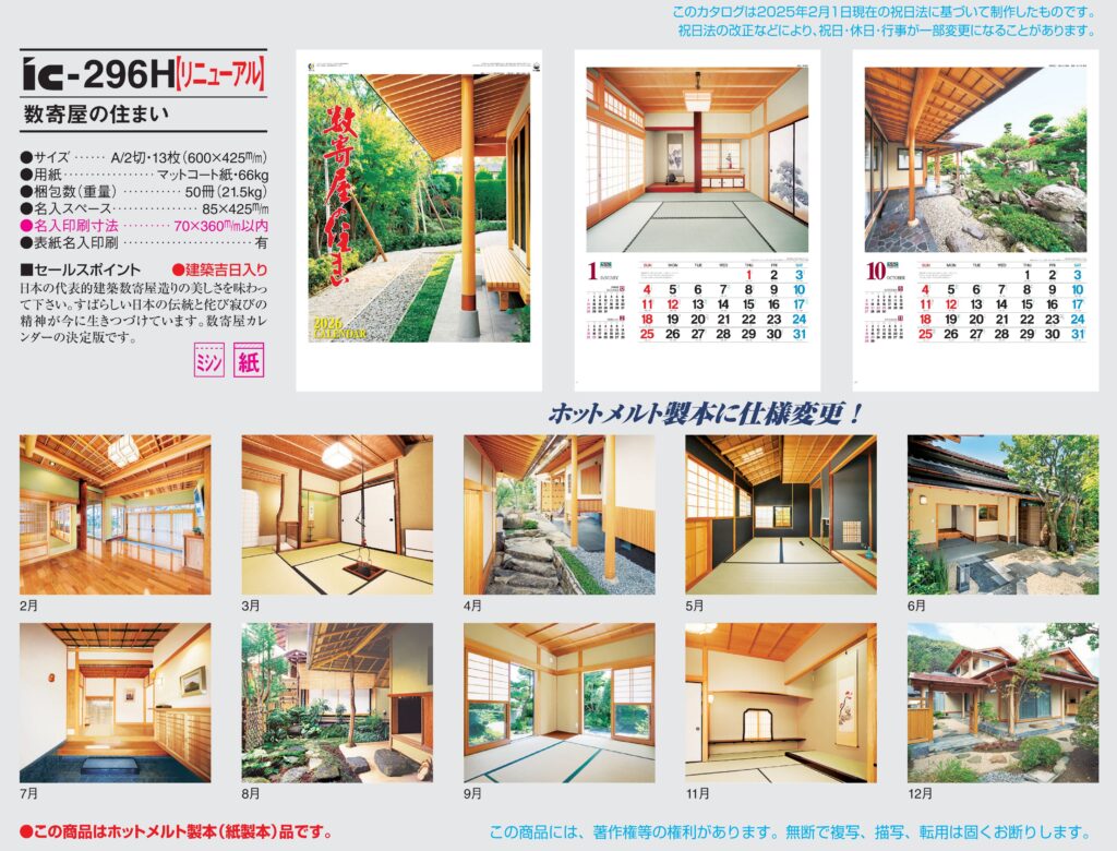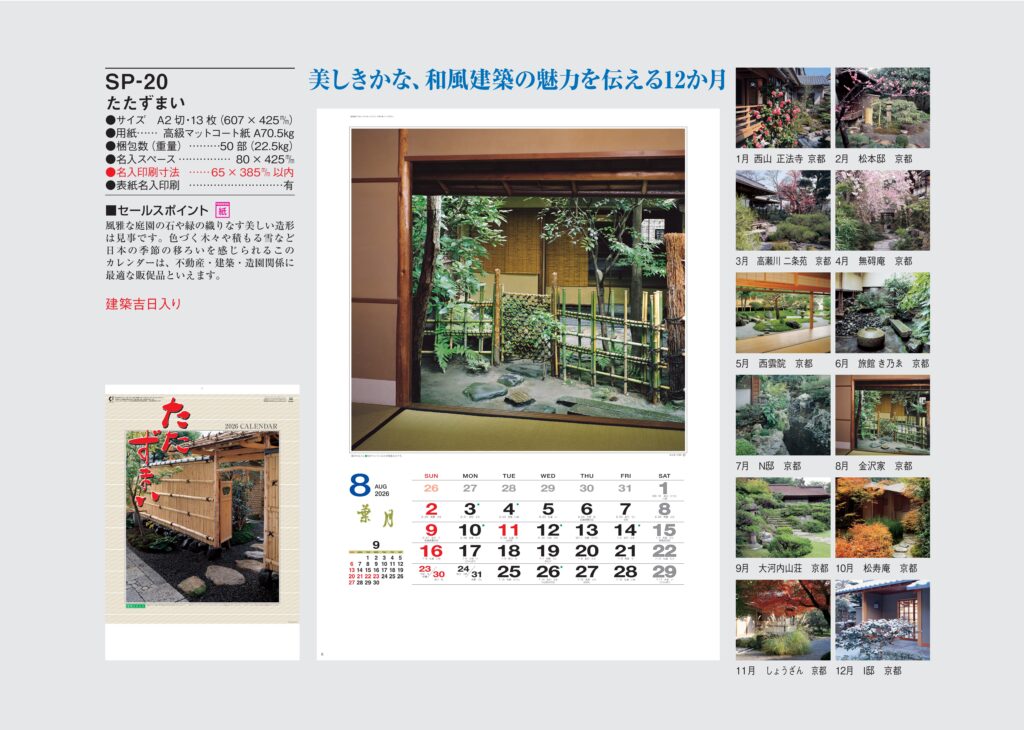 商品詳細 品番 : IC-299 A/2×13 日本の建築美 : 2026年版 < 伝統ある日本家屋のリフォームをテーマにした建築業界向けカレンダーの決定版! IC299 ◆現在メーカー【在庫豊富】 ●キャンペーン割 […]