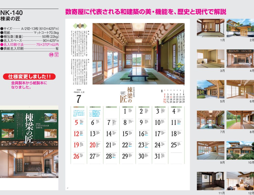 商品詳細 品番 : NK-140 A2-13 棟梁の匠 : 2026年版 < 数奇屋に代表される和建築の美・機能を、歴史と現代で解説の名入れカレンダー NK140 ◆現在メーカー【在庫豊富】 ●キャンペーン割引価格中 […]