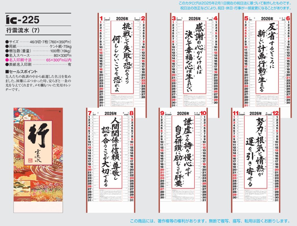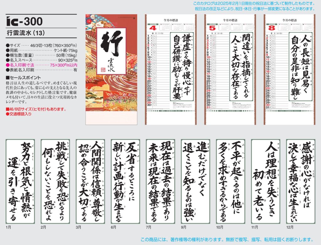 商品詳細 品番 : IC-300 46/3×13 行雲流水 (13) : 2026年版 < 格言は人生の道しるべです。めまぐるしい現代社会にあっても、常に心の支えとなる先人の教訓の中から、セレクトした格言集です。 I […]
