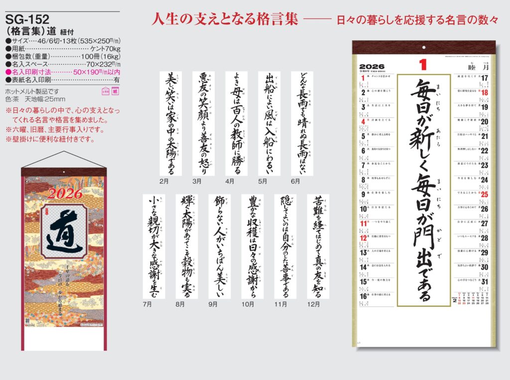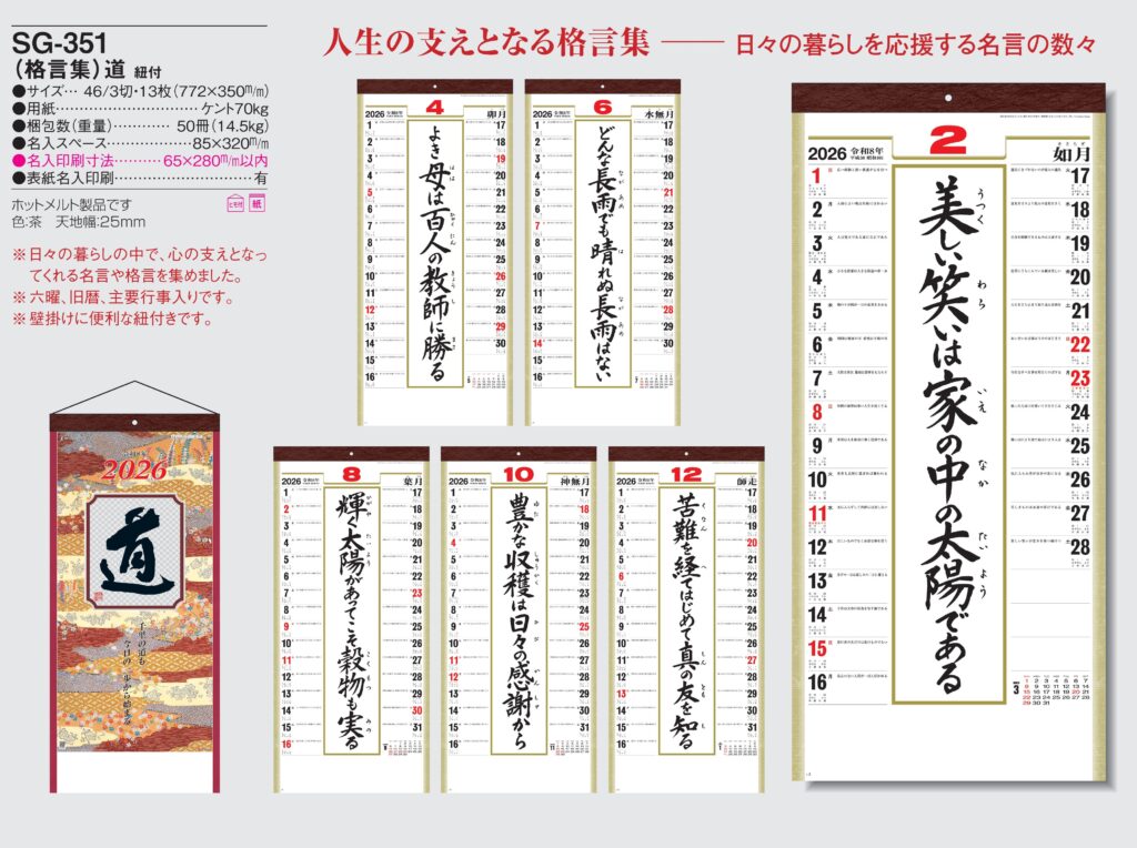 商品詳細 品番 : SG-253 46/4-13 格言付色分文字(厚口) 晴雨表入り・年間予定表付 : 2026年版 < レギュラーサイズ一般的なサイズの名入れカレンダーです。 SG253 ◆現在メーカー【在庫豊富】 […]