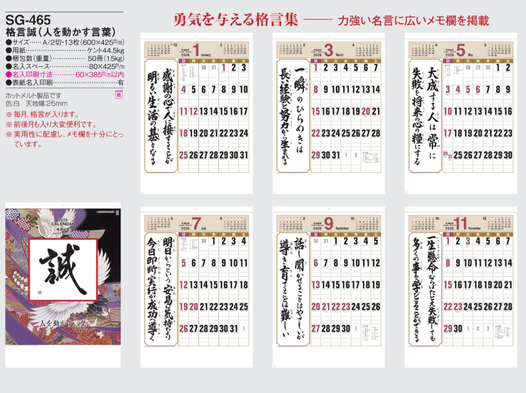 商品詳細 品番 : SG-465 A/2-13 格言誠 (人を動かす言葉) : 2026年版 < 手頃な価格で心に響くカレンダーを飾ろう!。 SG465 ◆現在メーカー【在庫豊富】 ●キャンペーン割引価格中の8月31 […]